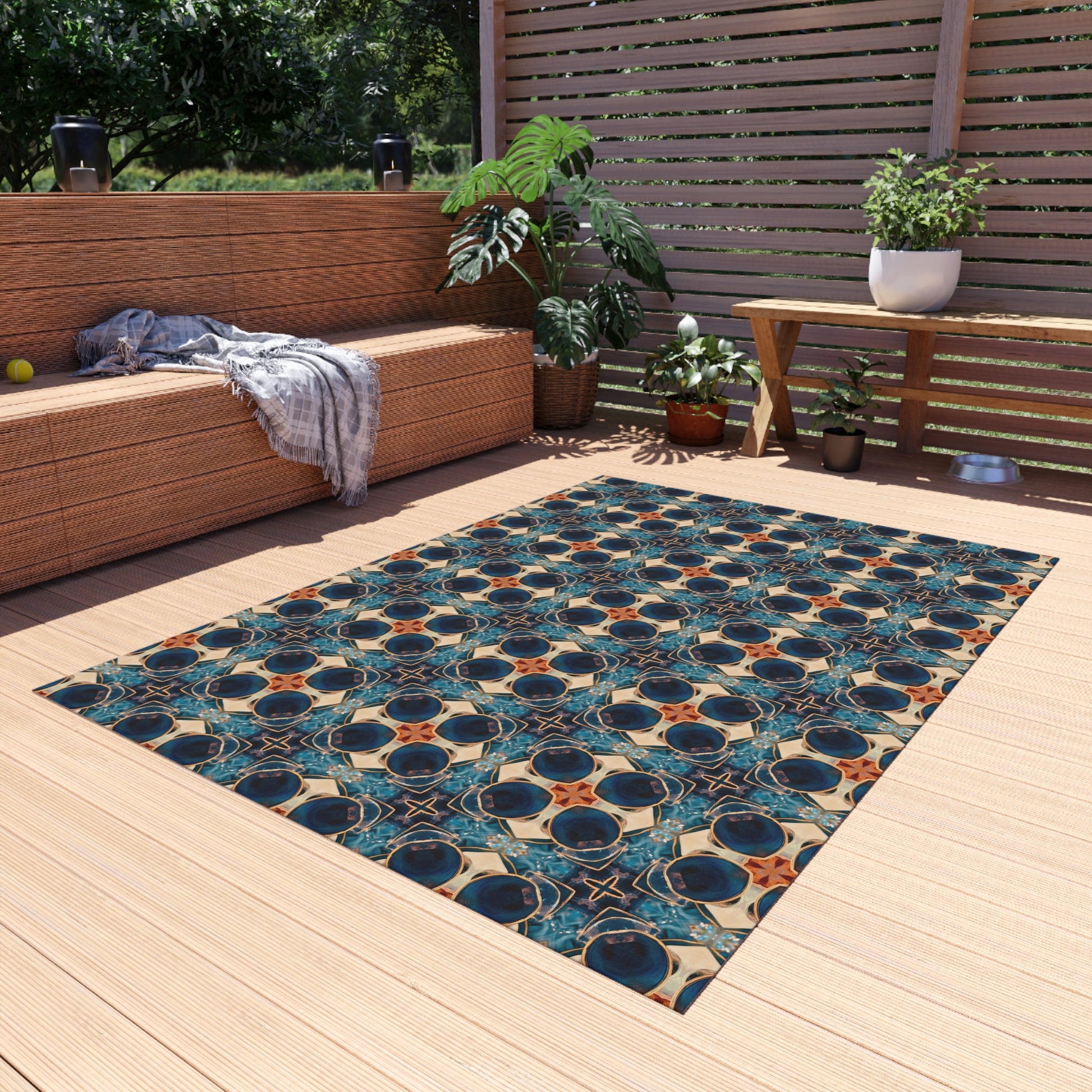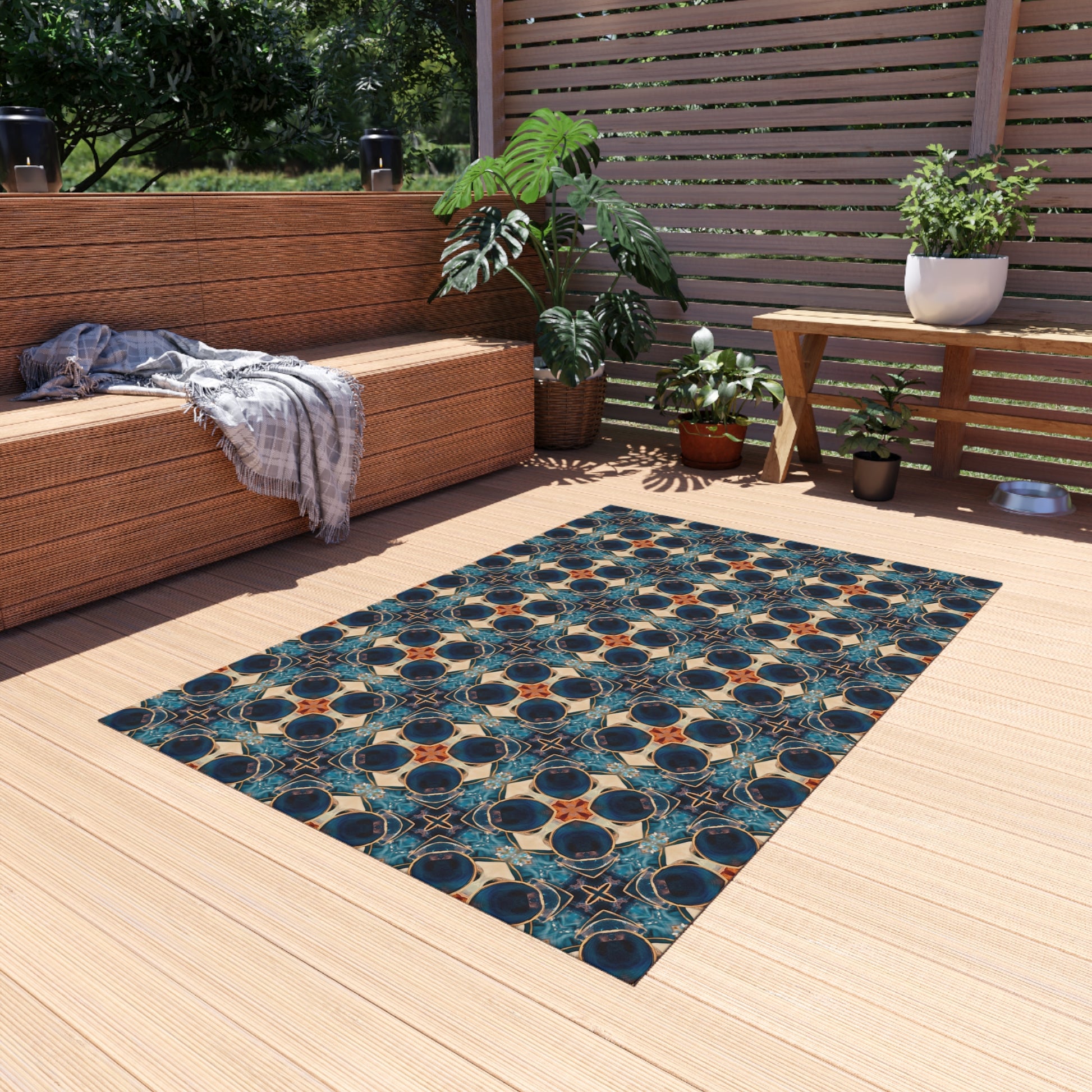 Our B.Maraffi indoor/outdoor rugs are the perfect addition to any room or outdoor patio space. They are made from polyester chenille fabric with a no slip polyester backing and hemmed edges. They're washable, very durable, breathable, and dry quickly. Availble in a variety of sizes.